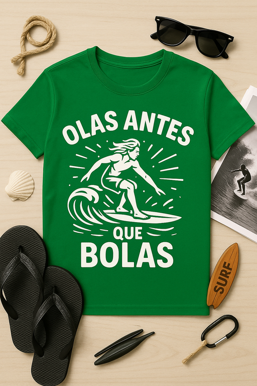 Camiseta Olas antes que bolas – Humor surfero para vivir sin drama