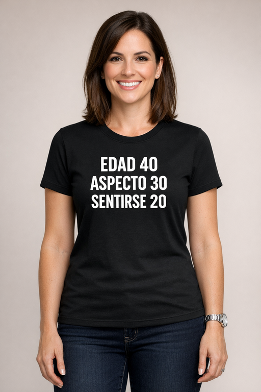 Camiseta divertida: Edad 40, aspecto 30, sentirse 20