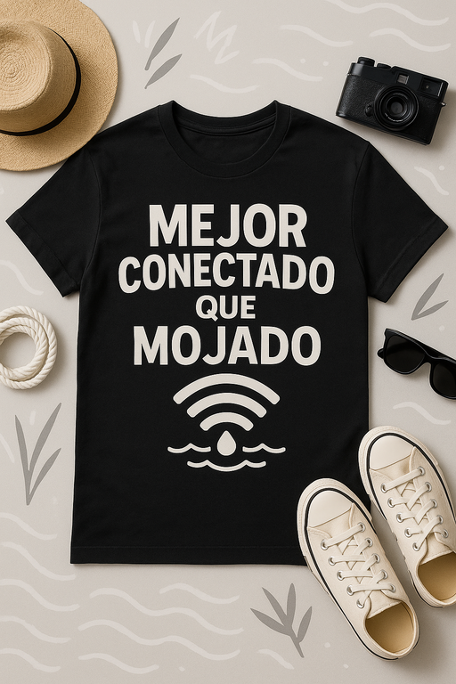 Tintas water-based y descarga: En camisetas de algodón oscuro, la descarga permite acabados suaves y vintage. Funciona de maravilla en marino y negro carbón, pero el tono final depende del tinte de fábrica. Si buscas humor con vibe retro, es una gran elección.
