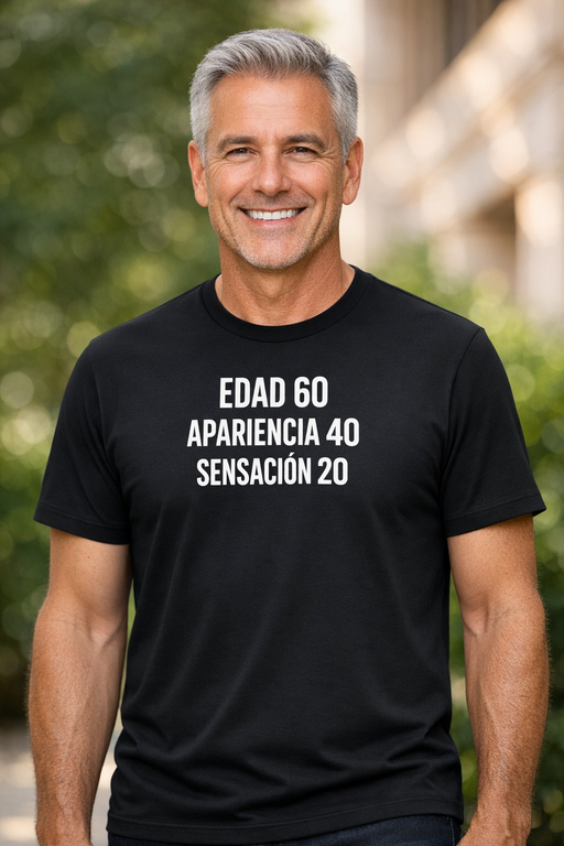 Camiseta divertida: Edad 60, apariencia 40, sensación 20