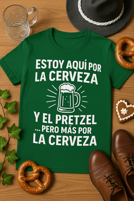 Camiseta Estoy aquí por la cerveza y el pretzel… pero más por la cerveza