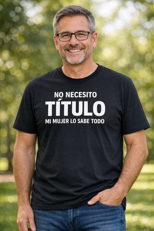 Camiseta divertida «No necesito título, mi mujer lo sabe todo»