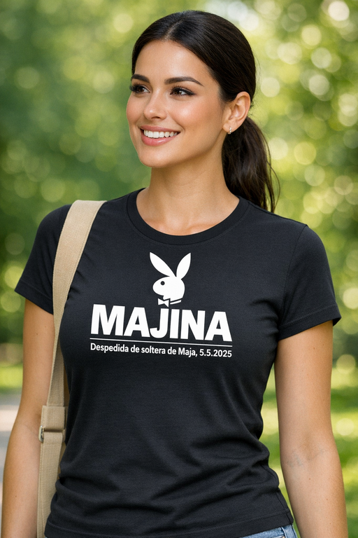 Camiseta divertida Playboy con nombre y fecha para despedida de soltera