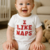 A veces no hacen falta palabras: basta el texto rojo en el body blanco de manga corta. Esta prenda rompe el hielo en las visitas, provoca carcajadas y asegura fotos legendarias (y un poco de pánico entre los más susceptibles).