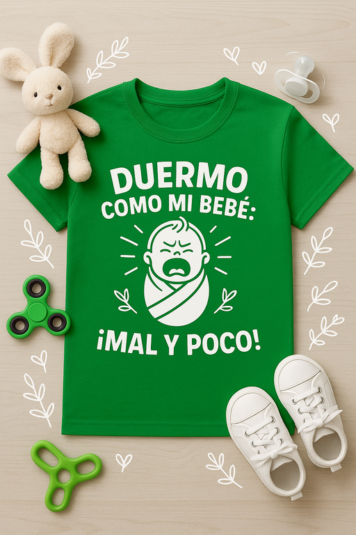 Camiseta Duermo como mi bebé: Mal y poco (Unisex)
