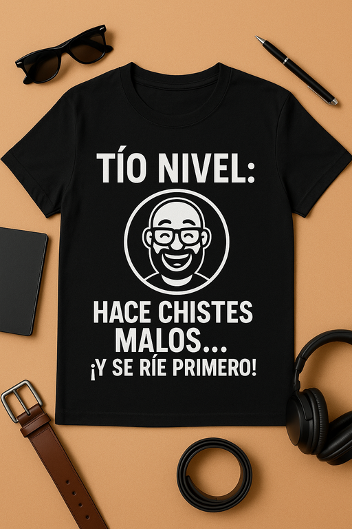 Camiseta Tío nivel: Hace chistes malos… ¡y se ríe primero!