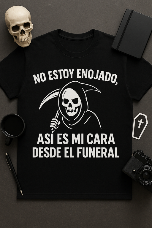 Para quienes dominan el arte del sarcasmo con una sola mirada. Esta camiseta grita sin hablar: No estoy enojado, así es mi cara desde el funeral. Perfecta para explicar tu resting face con elegancia oscura y un toque de humor que desarma.
