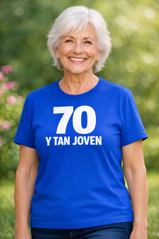 La edad es solo un número; la actitud es para siempre. Con “70 Y TAN JOVEN” lo dices todo sin necesidad de soplar ni una vela: confianza, humor y ganas de disfrutar a lo grande.