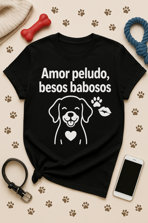 Porque los mejores besos vienen con babita: luce tu amor perruno con la camiseta “Amor peludo, besos babosos”. Ideal para paseos, tardes de parque y selfies con hocico incluido. Si tu mascota es tu fan n.º 1 (y tu exfoliante facial oficial), esta es tu prenda.