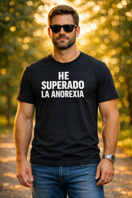 HE SUPERADO LA ANOREXIA: un mensaje directo, con personalidad y pensado para quienes llevan su victoria con humor y cabeza alta. Negra, minimalista y con un estampado blanco que no pasa desapercibido.