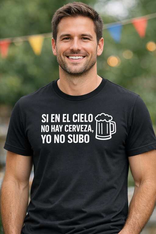Cuando hay cerveza de por medio, hasta el cielo puede esperar. El mensaje “SI EN EL CIELO NO HAY CERVEZA, YO NO SUBO” y la jarra en blanco lo dejan clarísimo: risas aseguradas y brindis en cada plan.