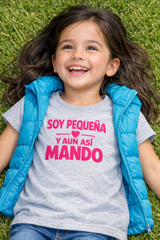 Porque en cuanto se la pone, el mensaje lo dice todo: SOY PEQUEÑA Y AUN ASÍ MANDO. Un diseño en rosa sobre gris claro, divertido y con mucha personalidad para las que lideran el juego con una sonrisa.