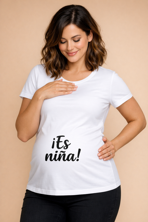 Diseñada para acompañarte cómodamente durante el embarazo, con un corte pensado para realzar la tripa sin apretar y un acabado perfecto para que el mensaje se vea impecable.