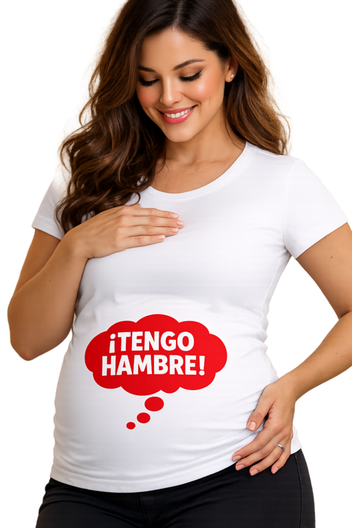 Porque convierte esos antojos de embarazo en un mensaje claro y con mucho humor: ¡TENGO HAMBRE!. La nube roja en el vientre pone el foco justo donde toca y hace que todo el mundo entienda el “modo snack” sin necesidad de decir ni una palabra.