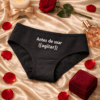 Braguitas negras para mujer con mensaje en blanco y un print de labios en la parte delantera: receta infalible de risas y chispas. El lema ALL YOU CAN EAT lo dice todo antes de que digas «beso»… y deja a tu pareja una pista clarísima para una noche divertida.